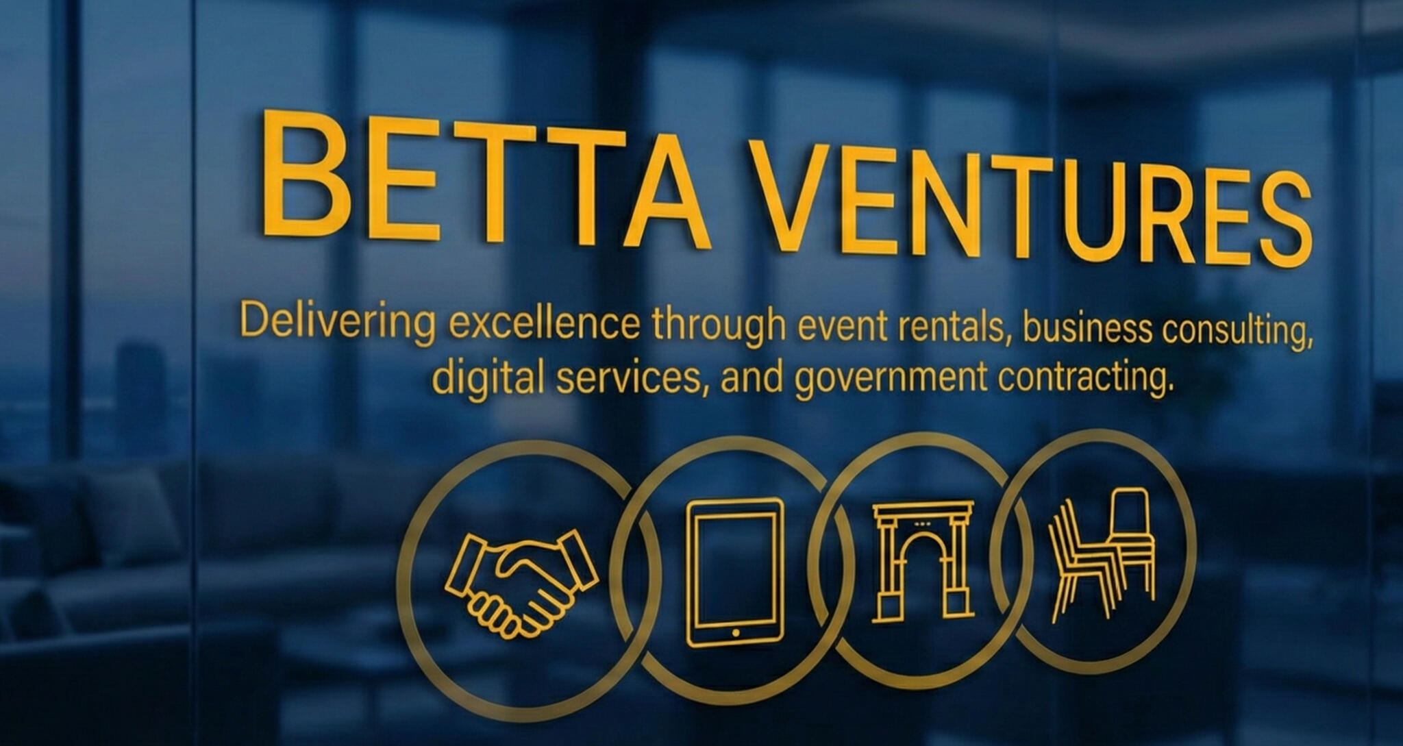 Betta Ventures LLC delivers results that matters, from seamless event rentals, Business Consulting(AI Automation, Agile Coaching) government contracting & digital services